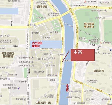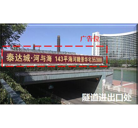 隧道位于金湯橋輔路,周邊有天津古文化街、大胡同商業區,海河游輪、天津站、意大利風情旅游區等主要景點。其上過街天橋媒體地理 位置優越,車流量大,媒體視覺效果好,受眾率高。